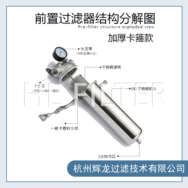 前置過(guò)濾器通常為“T”型結(jié)構(gòu)。上面的“一橫”的位置左右兩端分別為進(jìn)出水口。下面的“一豎”位置為機(jī)身和內(nèi)部的筒形過(guò)濾網(wǎng),最下端則為排污口,靠一個(gè)閥門(mén)來(lái)控制開(kāi)啟和關(guān)閉。濾網(wǎng)的...