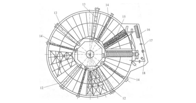 轉(zhuǎn)臺真空過濾機是一種連續(xù)真空過濾設(shè)備.其典型結(jié)構(gòu)特征是在一環(huán)形平面上徑向設(shè)置多頭螺旋卸料.