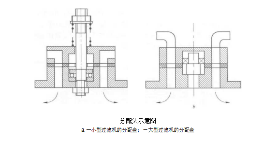 翻盤(pán)真空過(guò)濾機(jī)由濾盤(pán)組件,轉(zhuǎn)盤(pán),導(dǎo)軌,分配頭.擋托輪,傳動(dòng)裝置,加料斗,洗滌斗,平臺(tái)等部件組成.